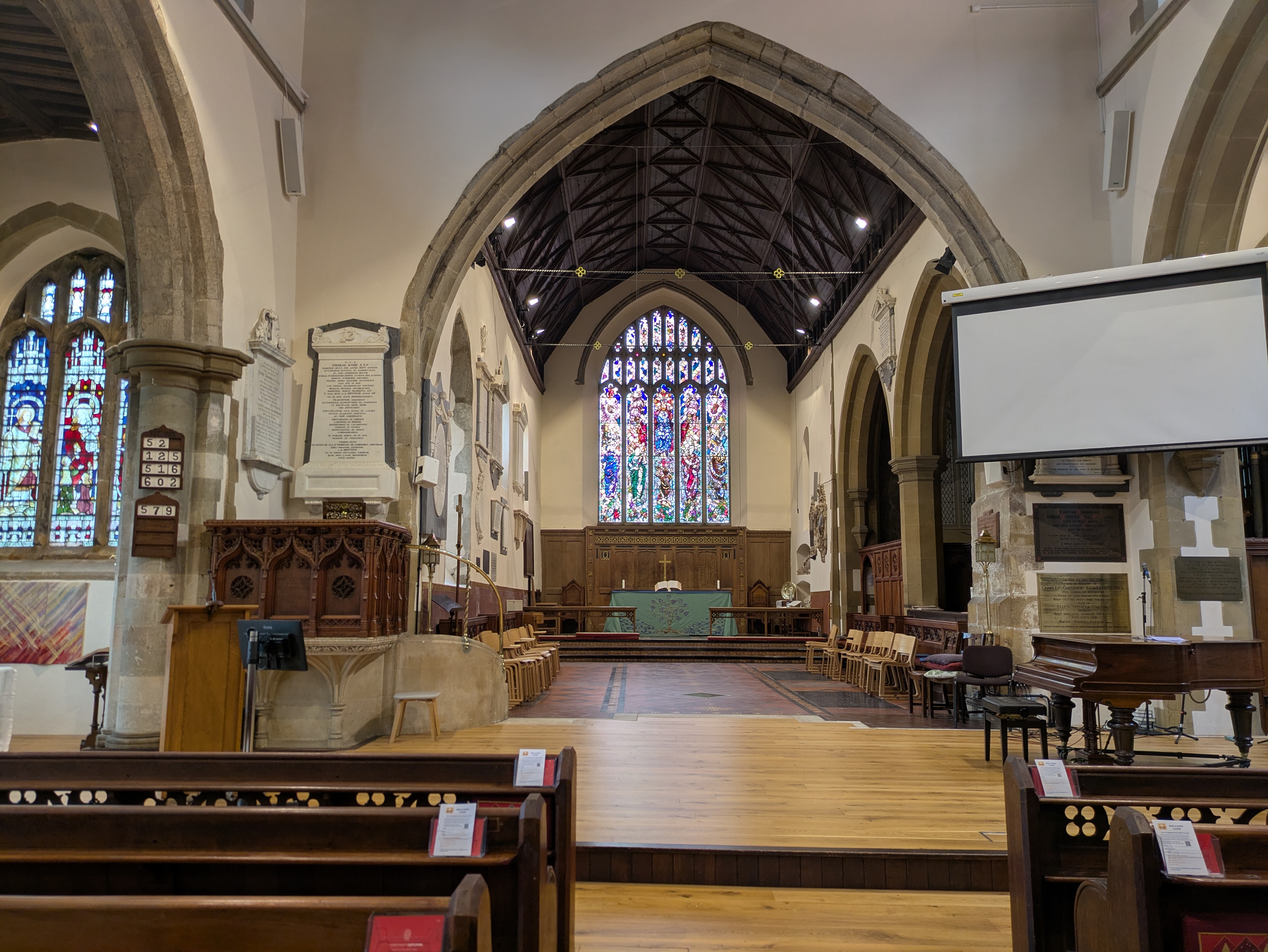 Looking down the central aisle you may notice the chancel is at an angle; this is not a mistake but an intended feature of the architecture to reflect the crucifixion, when Christ's head fell to one side.
